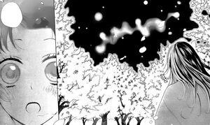 Nanami, aún sin ser descubierta por Tomoe, sigue siendo Yukiji frente a él. Mientras la joven mantenía ocupada su cabeza con la idea de que el Tomoe de ahora es incluso más violento que el Tomoe del futuro, el salvaje demonio aparece detrás de ella ofreciéndole comida. Nanami baja su mirada, algo desanimada pues, cuando llamó a la chica para darle de comer, dijo "Yukiji"[Notas 1]; aquella reacción es interpretada por Tomoe como señal de que "Yukiji" aún le teme. Nanami dice que no es eso, pero que no le odie no significa que se irá con él, ya que debe ir a casa. El Demonio Zorro, entonces, pregunta a "Yukiji" si realmente desea convertirse en novia de un hombre, a pesar de que todos sean insectos; la chica contesta al demonio que ella no lo ve como insecto, sino como una importante familia de la que ella será parte. La expresión de Tomoe se torna sombría y muestra a Nanami la horquilla que, el mismo Tomoe en el futuro, le dio cuando visitaron el parque de diversiones juntos; la joven Diosa de la Tierra reacciona inmediatamente y exige la devolución de ese preciado objeto, lo que pasa únicamente después de que ella misma le arrebatara la horquilla de las manos. Nanami se siente impotente por no poder decir la verdad acerca de aquel objeto a Tomoe, por otro lado, Tomoe ve que otra vez ella está cabizbaja así que la lleva de una forma muy poco delicada a un sitio que podría animarla.