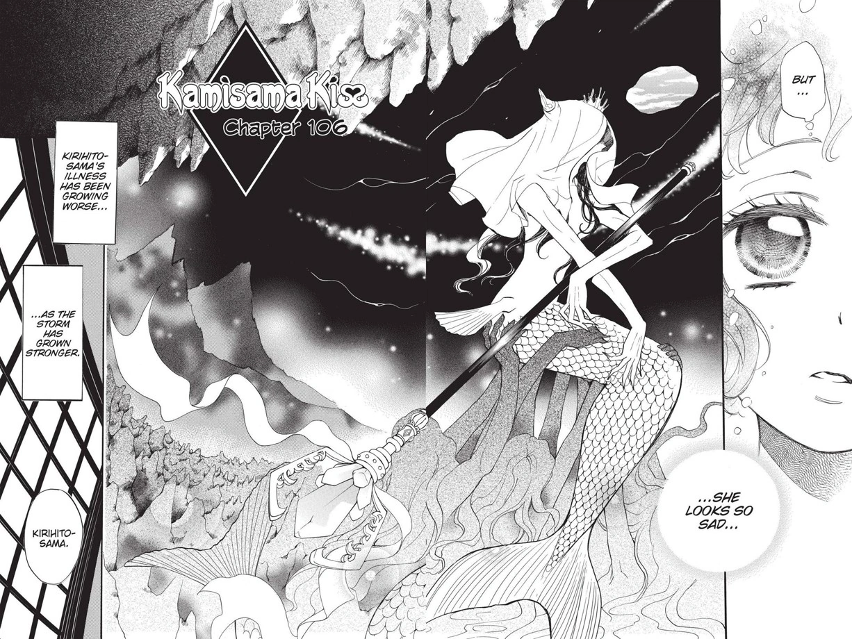 Meanwhile, Kirihito hears Unari's song. Telling his shikigami stop the song. Yatori then arrives saying that Kirihito's shikigami is useless. Yatori questions Kirihito's condition. Kirihito replies that he had recovered and gained some strength after stealing a kiss from Nanami earlier. He then says to Yatori to kill Unari, but Yatori disagrees, telling Kirihito that there would be no more bloodshed, because it increased their enemies. Kirihito mentions that the only way to stop the song of Unari is to leave the island.