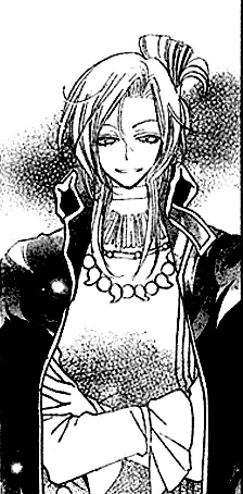 Okuninushi is a male with long titanium-blonde coloured hair, the colour matches his long and thick eyelashes and thin eyebrows. He can be described as handsome with charming emerald green eyes. He is seen to have earrings, a chocker and head piece as decor and is wearing bright clothes that match his bubbly personality.